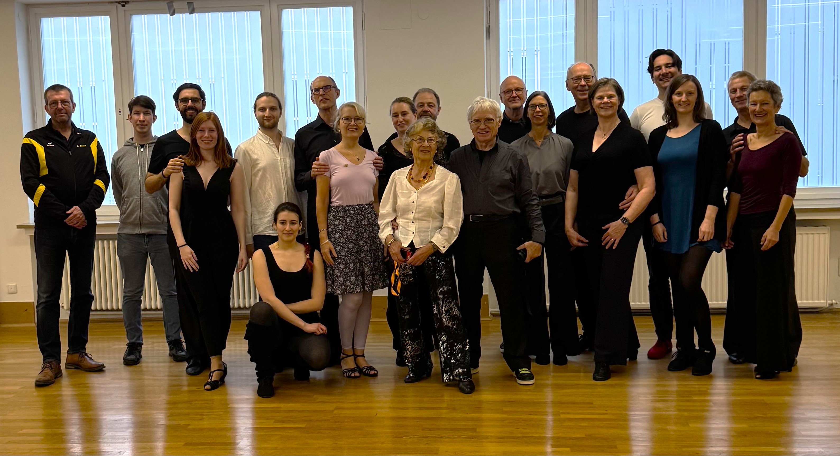 Schließlich posieren noch alle für das Gruppenfoto – und schlagartig löst sich die Spannung auf. Die Musik läuft weiter, unbeschwert schweben die erfolgreichen Tänzerinnen und Tänzer über das Parkett. Jetzt wird auch der Sekt aus dem Kühlschrank geholt und der Kuchen aufgefuttert. Man prostet sich zu, man gratuliert sich gegenseitig. Und die strahlenden Gesichter passen endlich zur festlichen Stimmung!